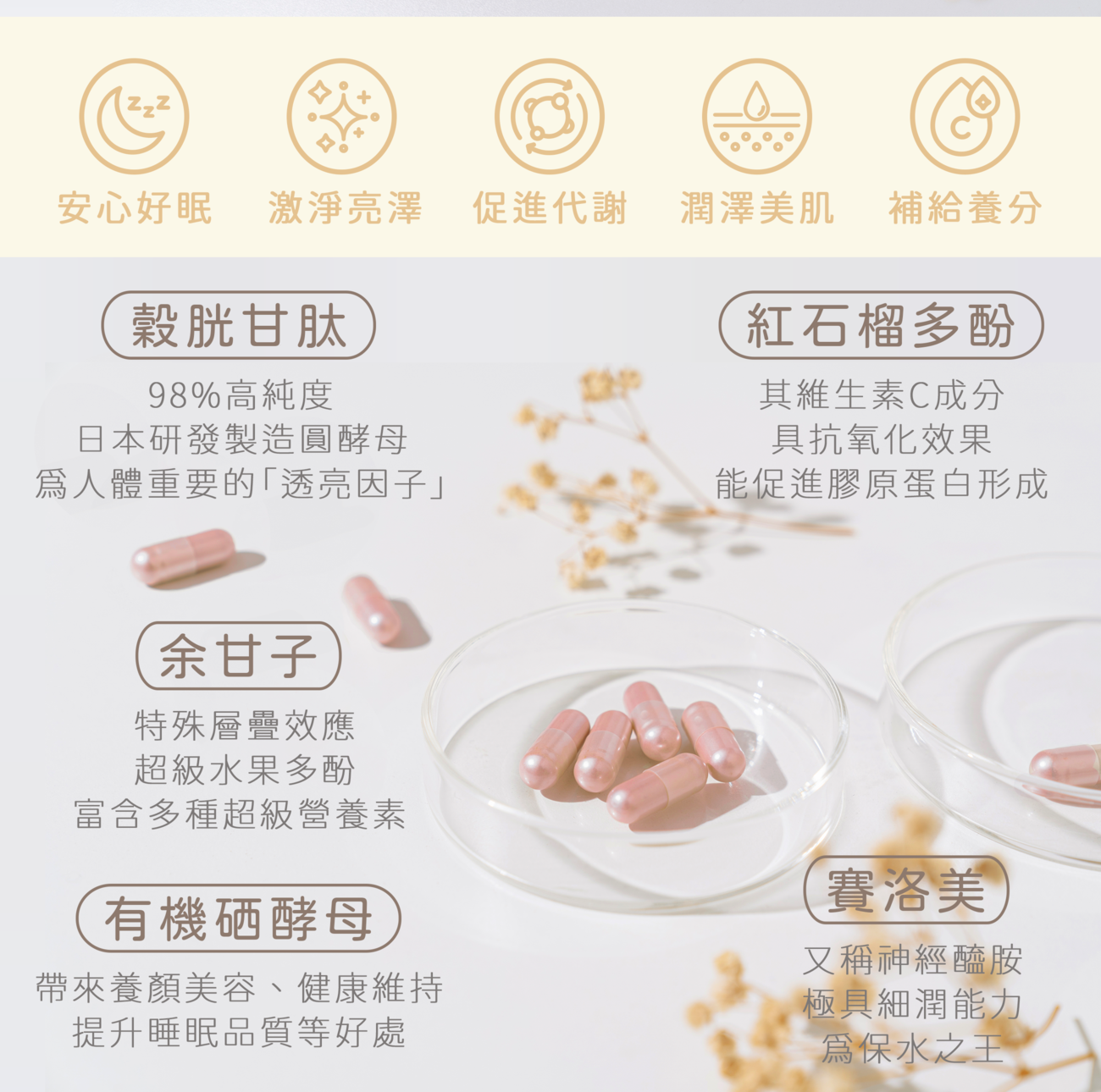 可帶來養顏美容、青春美麗、健康維持、促進代謝、幫助入睡、調整體質等益處。